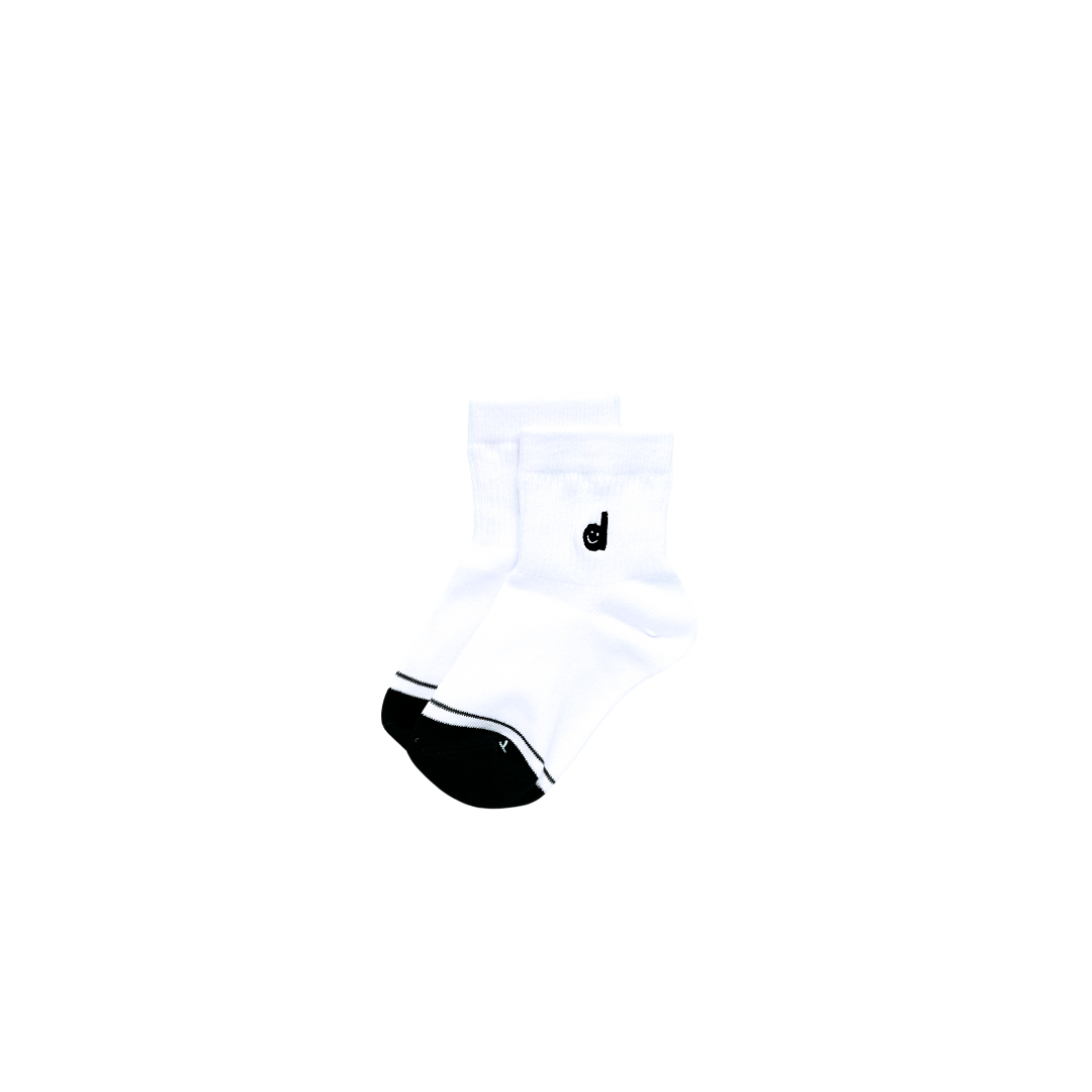 A basic white crew style sock for boys. An organized laundry hack for busy parents.